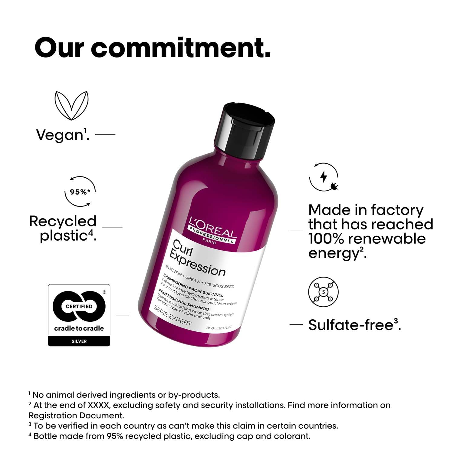 L’Oréal Professionnel Curl Expression Intense Moisturizing Cleansing Shampoo (300ml) is a professional hydrating shampoo created to gently cleanse curls and coils while preserving their natural moisture balance. Formulated with Glycerin (2%), Urea H, and Hibiscus Seed Extract, it provides deep hydration, softness, and definition without weighing curls down.